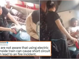 Woman Boils Water in Electric Kettle Inside Moving Train – Sparks Safety Concerns & Railway Rules Reminder