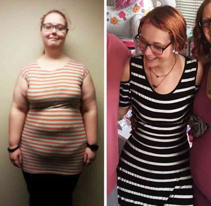 “Down 170 lb in 2 years. 2 months removed from surgery for removal of endometriosis. You should, ladies, do it. The pain, I understand!”