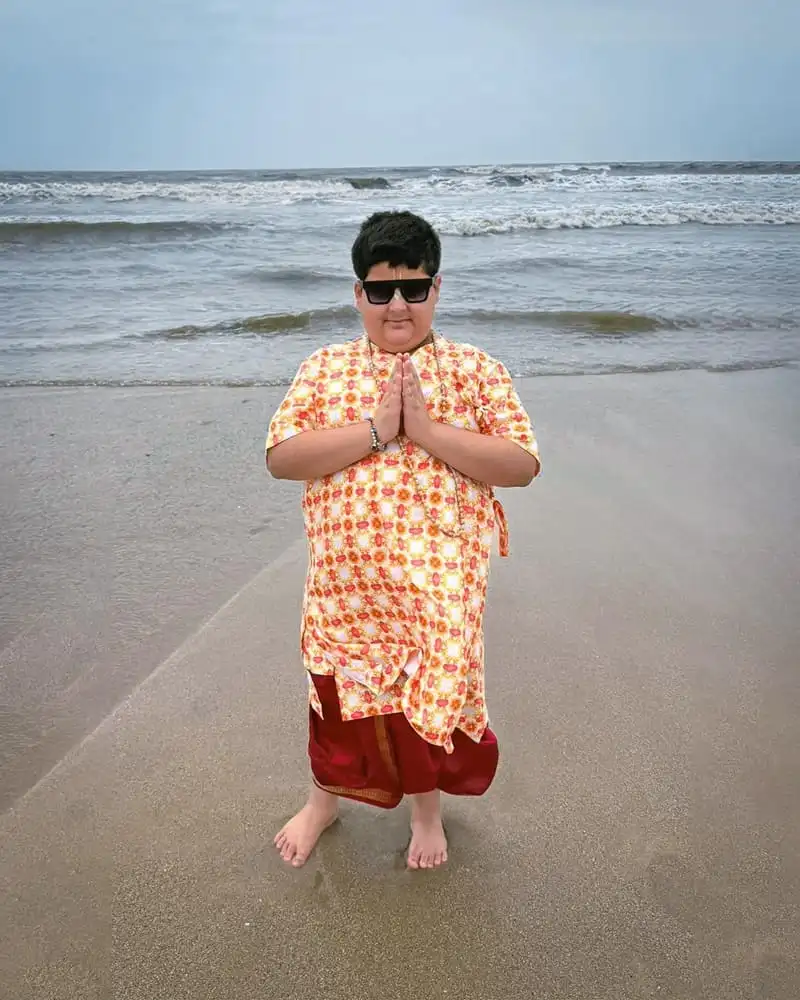 He says that at the startlingly young age of three, his son began to follow a spiritual path. Ever since his enthusiasm for narrating tales and reciting devotionals to Shri Ram has only grown.