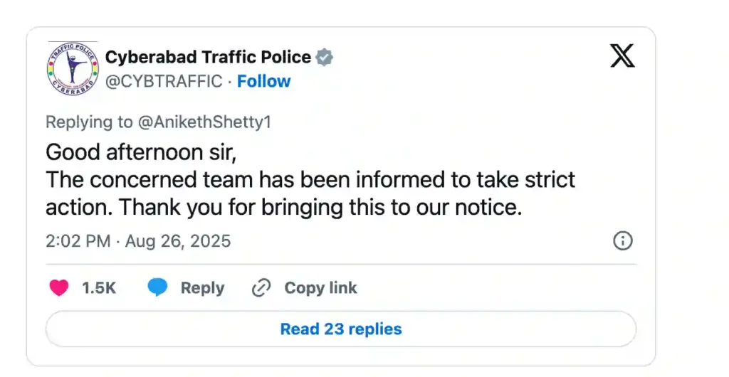 The video quickly went viral, drawing the attention of the Hyderabad City Police. They asked Aniketh to share the exact location of the incident.
