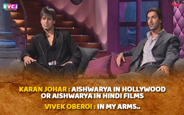 At a time when rumours about the affair of Vivek and Aishwarya were high, Karan asked him at Koffee With Karan-” Aishwarya in Hollywood or Aishwarya in Hindi movies?”He answered Karan’s question, and said-“Aishwarya in my arms.”