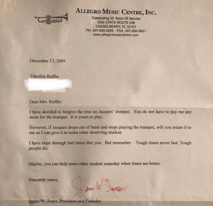 6. “Found an old letter sent to my mother who struggled to make my trumpet payments.”