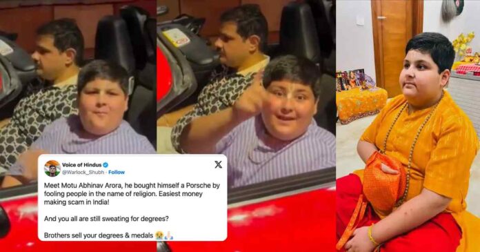 Massive online indignation has been sparked by a viral video showing 10-year-old spiritual orator Abhinav Arora and his father driving a Porsche. The youthful preacher has been criticised by online users for deceiving people in the name of religion. Debates concerning faith, influence, and the display of luxury at such a young age have been sparked by the video, which went viral very quickly.