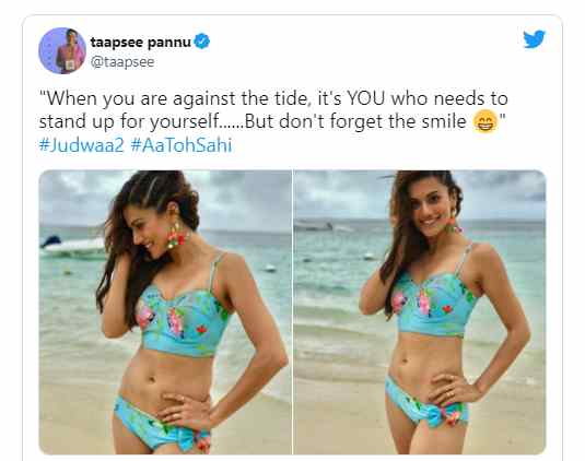 For the uninitiated, Judwaa 2 was a sequel to David Dhawan’s 1997 smash Judwaa, which starred Salman Khan in a dual role alongside Karisma Kapoor and Rambha. In the Judwaa 2 song Aa Toh Sahi, Taapsee donned a bikini.