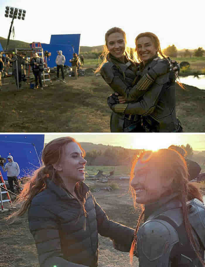 11. On their last day on set after working together since Iron Man 2, Scarlett Johansson and her stunt double Heidi Moneymaker.