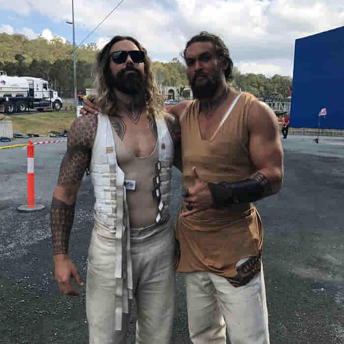 5. On the set of Mad Max: Fury Road, Tom Hardy poses with his stunt double.