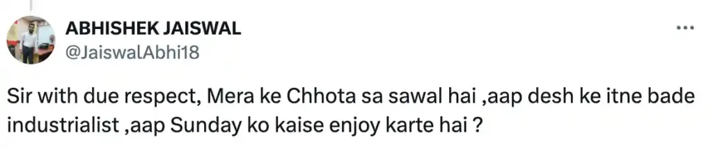As everyone is aware, the chairman of the Mahindra Group, Sir Anand Mahindra, is well-known for his entertaining and clever posts on Twitter. He recently replied to a tweet from user Abhishek Jaiswal, who questioned him about how he enjoys Sundays as such a well-known Indian industrialist.