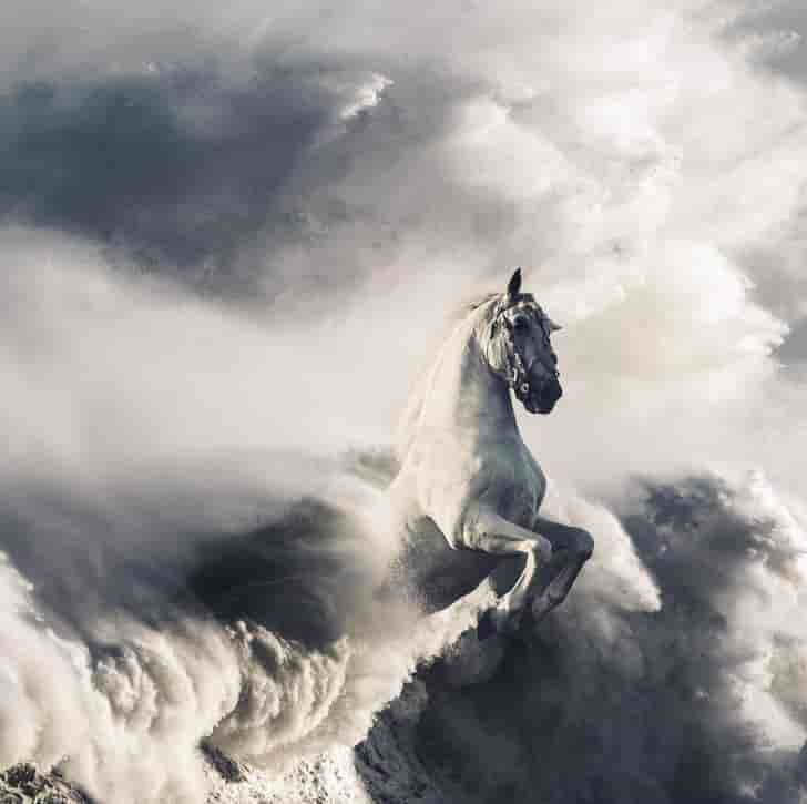 12. A horse riding the stormy waves