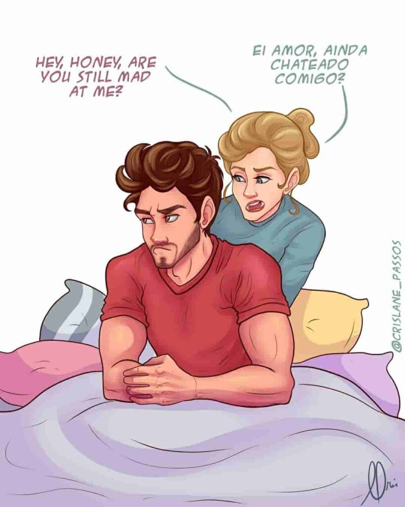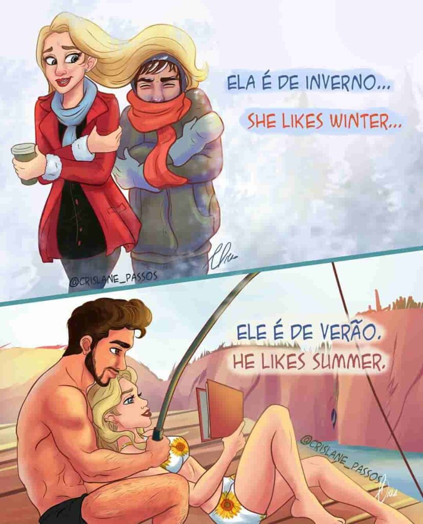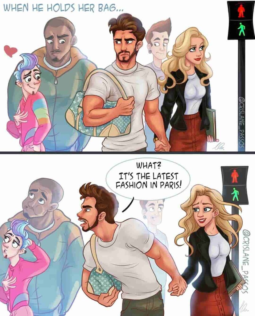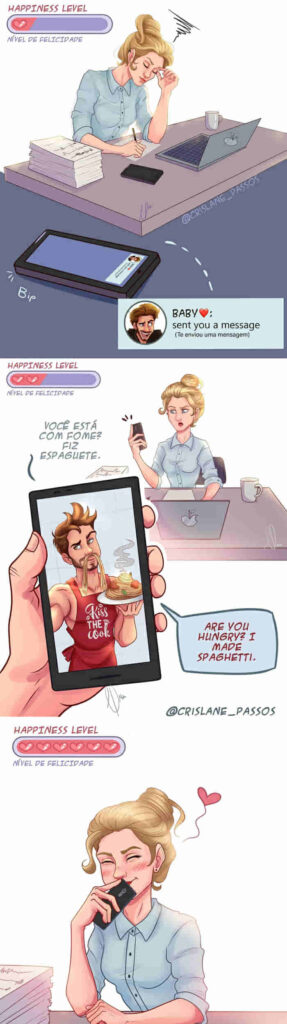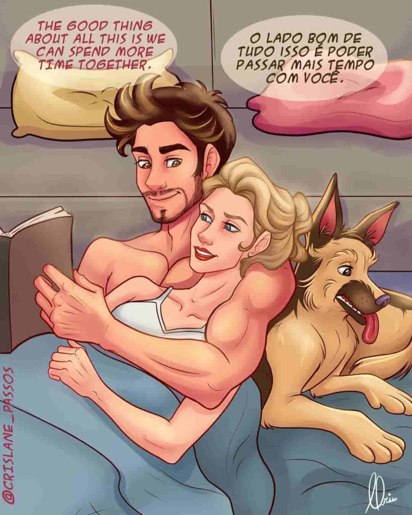 A long-lasting partnership is built on a good sense of humor, trust, and support. And this is exactly what Crislane Passos, a Brazilian artist, depicts in his pictures of Max and Julia. Cristine believes that the pair differences are what makes romance comics so fascinating, and we couldn’t agree more. Feelings are eloquently depicted, and you’ll be sure to fall in love all over again.