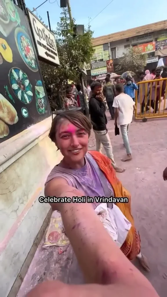 Austrian traveller Britta Schlagbauer (@breeandthelove on Instagram) has shared a distressing account of her Holi experience in Vrindavan, claiming that small stones mixed with coloured powder were thrown directly into her eyes, causing severe burning and blurred vision that persisted for days. The video she posted in late February/early March 2026 went viral, drawing attention to the potential dangers of chaotic street Holi celebrations in the sacred town.