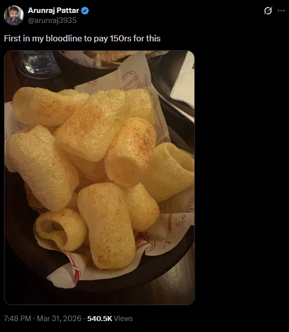 He recorded a short video expressing his disbelief and shared it online with the caption: “₹150 for gold-dusted fingers… bro, yeh toh bas masala hai!” (₹150 for gold-dusted fingers… bro, this is just masala!)