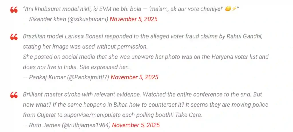 X turned detective agency overnight. Hashtags like #VoterListGlitch and #CarolInIndia trended in India and Brazil, blending horror with humor: