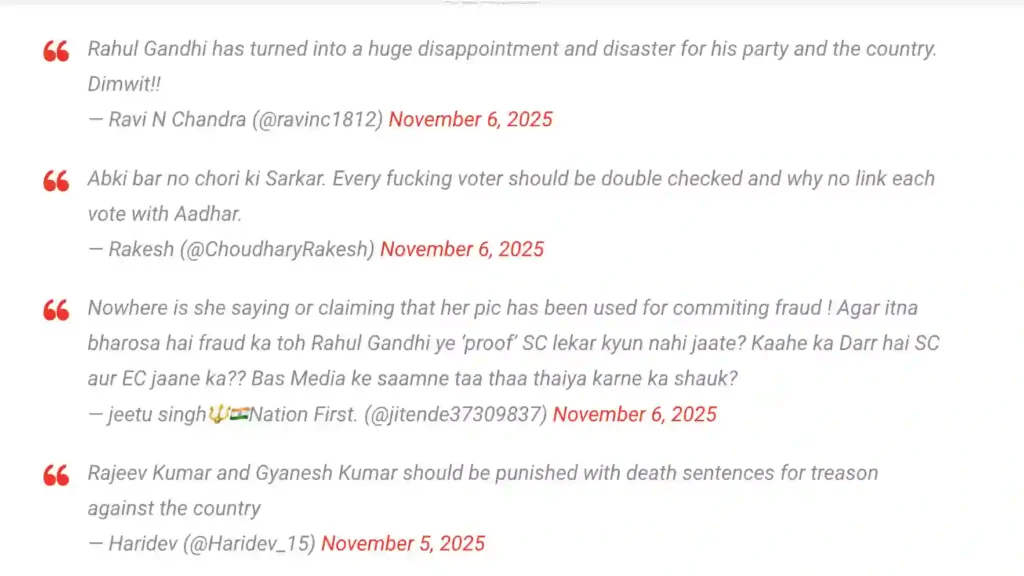 The side-by-side images tell the tale – Carol’s fresh-faced selfie, complete with her signature wavy locks and smile, mirrored exactly on the official ECI (Election Commission of India) portal. The name? Totally fabricated. The address? A nondescript Lucknow suburb. No passport stamps or travel logs to explain it. “I was in shock. How is this possible?” Carol shared in a now-viral X post, attaching screenshots that have racked up 500K views since November 4, 2025.