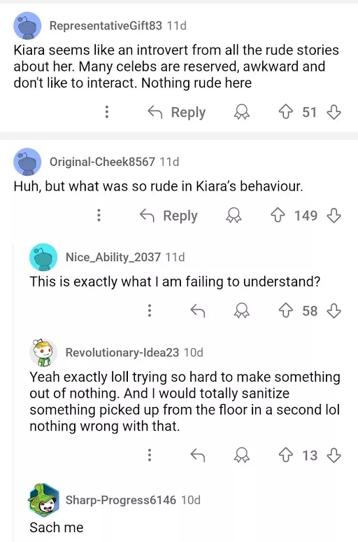 Social media users had conflicting reactions to the video and the comments that went with it. Some individuals backed Kiara Advani by sharing their own good experiences with her, while others expressed disbelief at the claims and called Kiara “Not so Pyara Advani.” Even that Kiara had been kind and sincere in his contact with her was stated by an aspiring actor.
