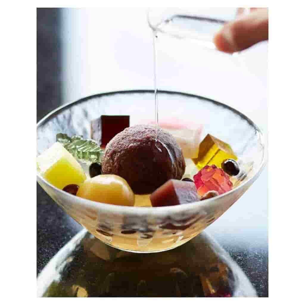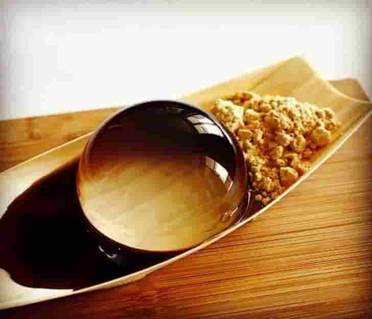 Waterdrop cake, also known as Mizu Shingen Mochi, is a clear confection that must be consumed within 30 minutes or it would vanish! Water, sugar, agar-agar powder, honey, and roasted peanuts are used to make it.