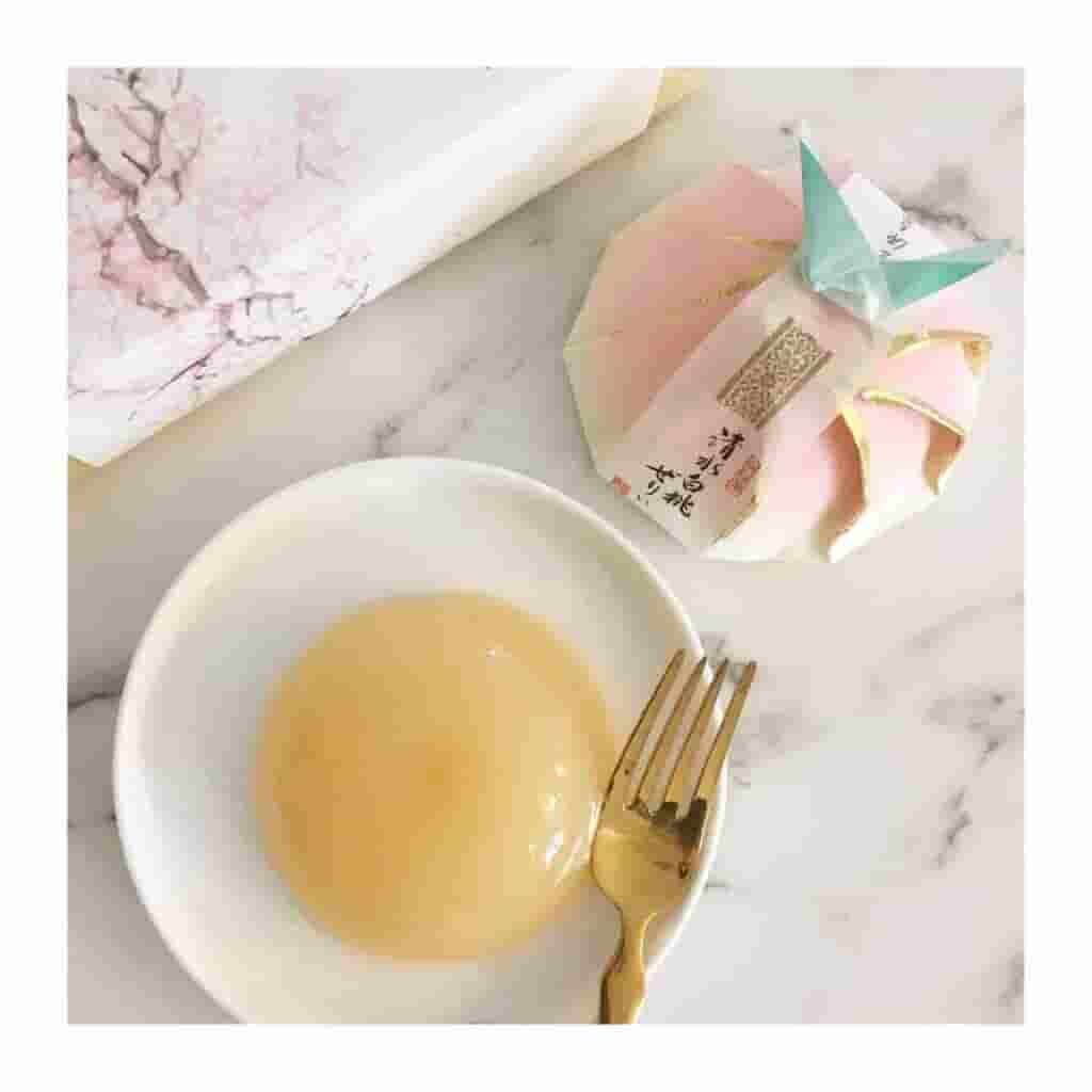 In the summer, a seasonal delicacy made with ripe hakuto peaches and spring water is offered.