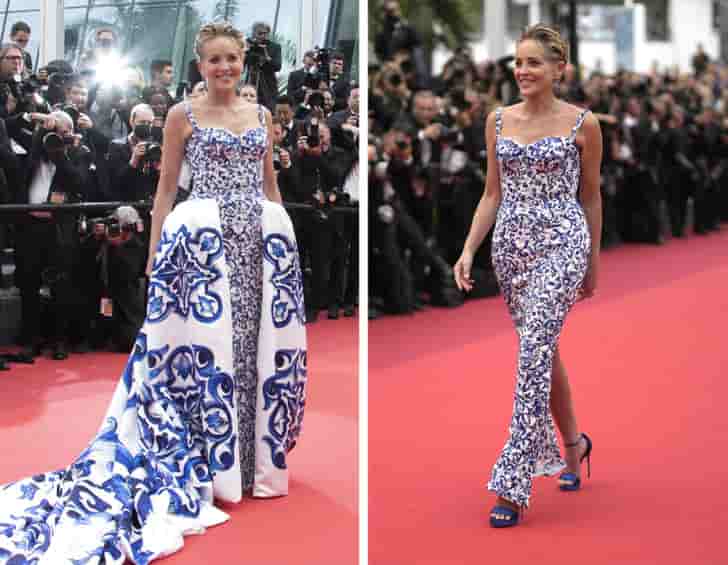 The Cannes Film Festival was transformed into a fashion presentation by Sharon Stone. She was wearing a dress with a large train, but when the train was taken off, the outfit looked very different.