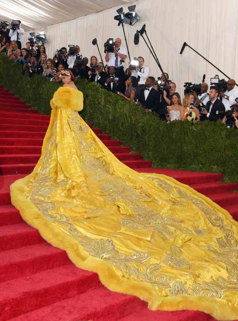 In 2015, Rihanna’s stunning yellow gown captured the Met Gala. Rihanna couldn’t stop gushing about how lovely Guo Pei’s Chinese couture was. She did, however, note that she couldn’t get around much without assistance. It took her about 50,000 hours to make this outfit!