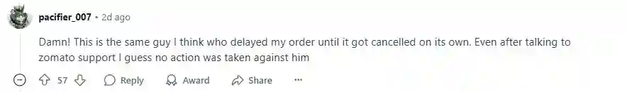 The consumer was completely taken aback by these offensive comments. He chose to post screenshots of the conversation on Reddit because he was upset about the entire situation. He uploaded it on the r/Zomato page with the title “Bhooka to main tha waise.” Users were shocked by the awful behaviour, and the post rapidly gained over 2000 upvotes and over 154 comments.