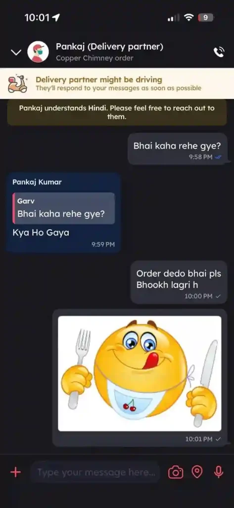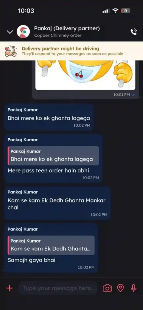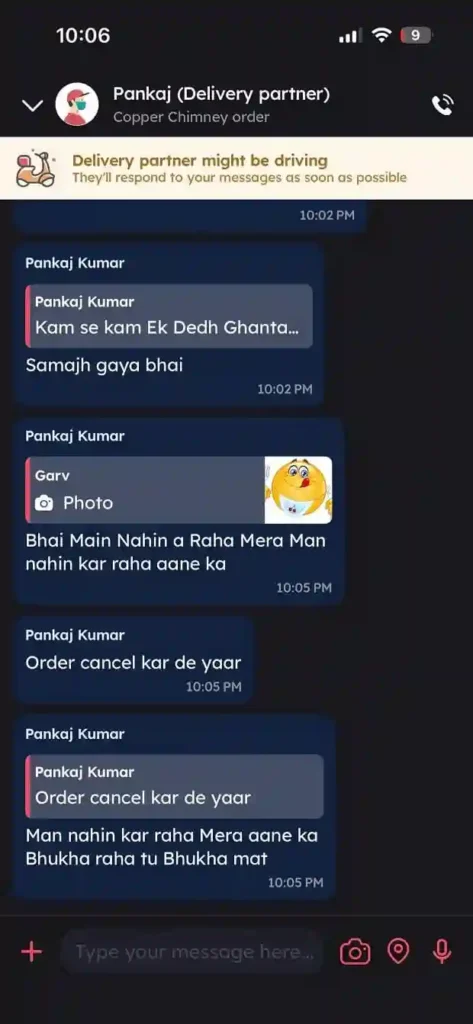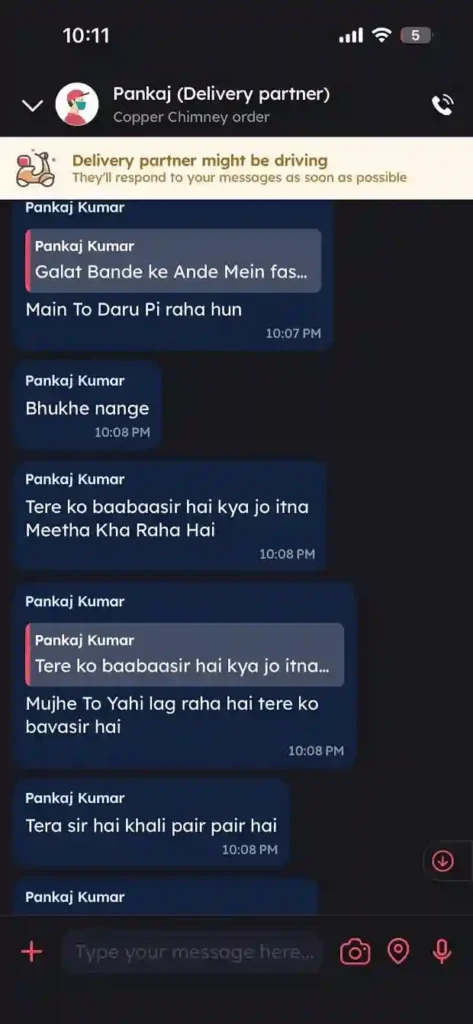 To this, the delivery boy snapped back saying he had three other orders and it would take him 1–1.5 hours. Things then got worse when the delivery boy, named Pankaj, rudely wrote:,