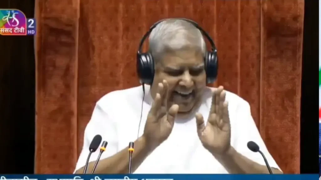The surprising turn of events led to a quick but amusing conversation between Dhankhar and Jaya Bachchan.