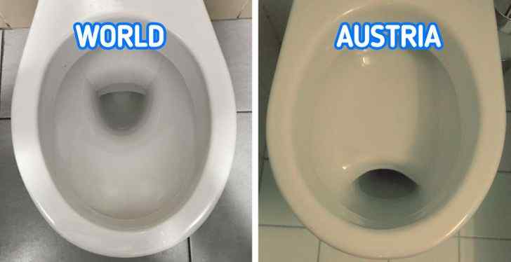 In Austrian toilet bowls, there is a shelf. The former contents of the guts stay on the surface of a shelf inside the bowl before travelling to the sewage. That’s how folks can do a self-examination of their health or collect a sample of their faeces to bring in for testing later.