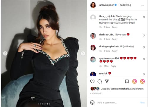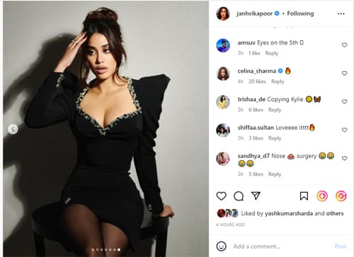 “Nose 🐽 surgery 😂😂,” another chimed in trolling Janhvi.