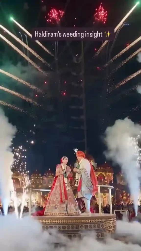 The “Haldiram wedding” has now taken over Instagram, with videos capturing the grand scale of the event. One video showed how the huge wedding venue was transformed into a palace with an elaborate set. It was decorated with towering floral arrangements, glistening ice sculptures, and massive chandeliers.