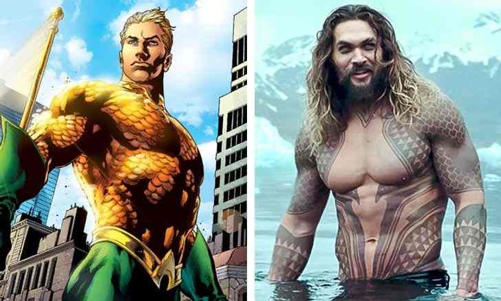 His blond hair is short, he has orange scales all over his torso, and he’s wearing green…spandex? This is how we first encountered Aquaman in comic books. And, while no one would object to seeing Jason Momoa half-naked and tattooed, those aren’t fish scales.