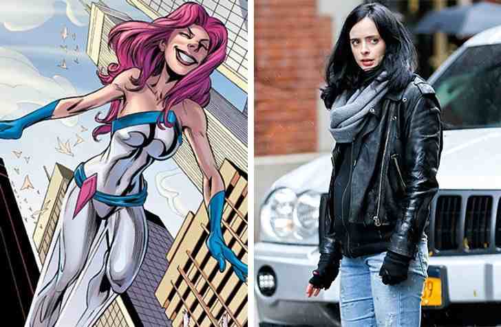 Jewel appeared when Jessica Jones was first allowed to put her abilities to the test. Killgrave captured her because she had pink hair, was light, and bubbly, and she aspired to save the world from harm. Jewel was briefly mentioned in the TV show and received a few minutes of screen time. Jessica Jones on TV is a dark character who usually wears plain black tees and jeans, despite the homage to her costume.