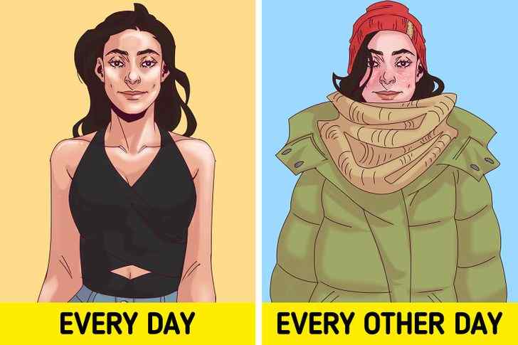 It’s only natural to feel the desire to wash off the perspiration every day, if not twice a day, while it’s hot outside. And because you sweat less in lower temps, you’ll probably need to shower less frequently. In the winter, your skin may feel unusually dry and sensitive, and showering every day may aggravate it and cause even more dryness.