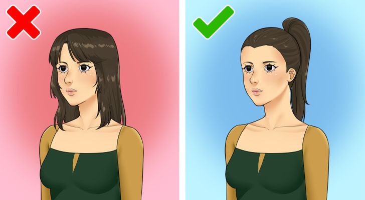 Hair should be kept away from the chin and jawline. Wash your hair daily to keep oil from your scalp and hair from clogging your pores and causing breakouts on your face.