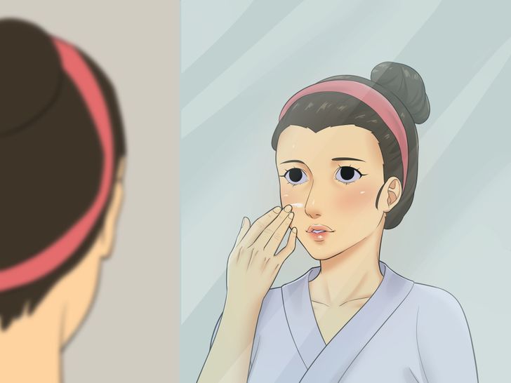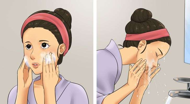 Wash your face twice a day (when you wake up and before you go to bed) and after each sweating session. Do not cleanse your skin more often, as this will irritate it and worsen acne. Gently rub the cleanser into your skin with your hands, then rinse with warm water. Avoid using abrasive washcloths or toxic cleaning agents. Makeup should never be worn to bed.