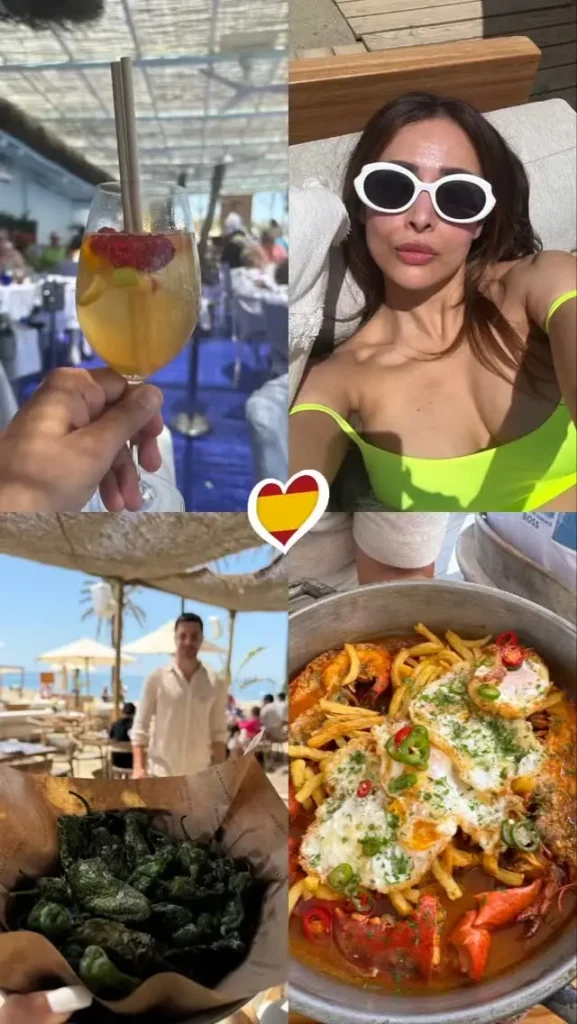 Malaika posted a picture of herself holding a dish of clams and a man standing by her table. Right now, the actor is on vacation in Spain.