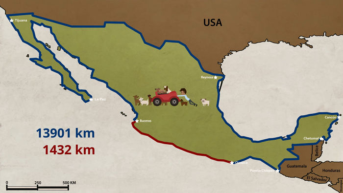 He has walked almost 14,000 km across Mexico to date. He has just 1,432 km left to fly to get to his destination.