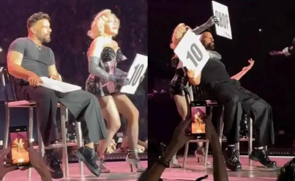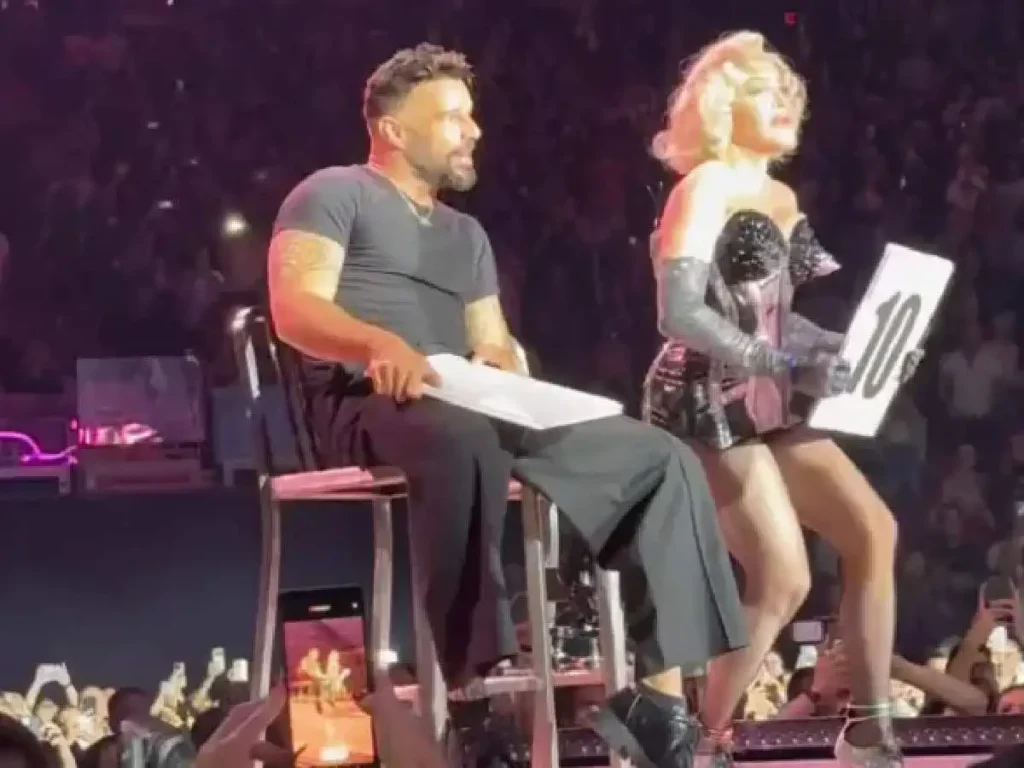 Surprises abound at Madonna’s concerts, and her most recent performance in Miami was no exception. The diva invited Ricky Martin to the stage for her performance of “Vogue” on Sunday during the Celebrations Tour. He refrained from dancing and singing with her, though. He was asked to assist in judging the ballroom section of the event while seated in one of two silver chairs.