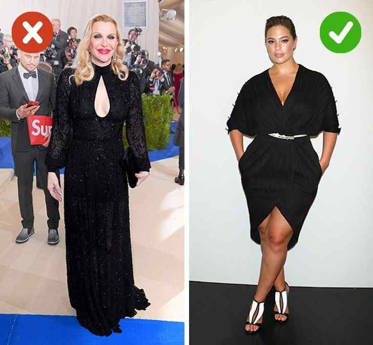 In truth, black isn’t for everyone, and it can’t cover extra weight on its own. You need a well-chosen cut, not black garments, to make your body appear slimmer.