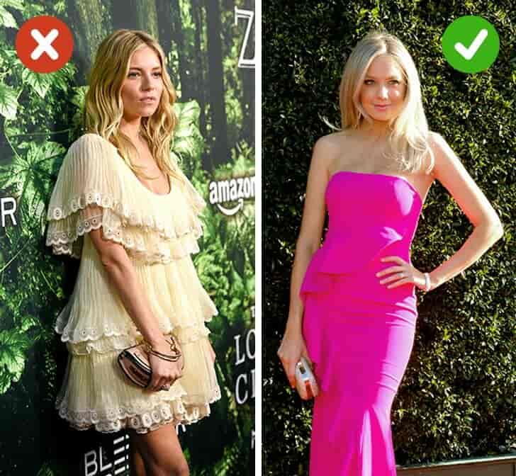 Frills on the sleeves are the safest option, according to stylists. They are suitable for anyone and have a stunning appearance. If you don’t have a model body, stay away from dresses with merely frills. They make the body “wider.”