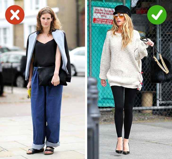 Oversized garments are ideal for tall and skinny women since they add vulnerability to the appearance. Short females, as well as those with non-standard bodies, should keep proportions in check and avoid wearing more than one voluminous garment.