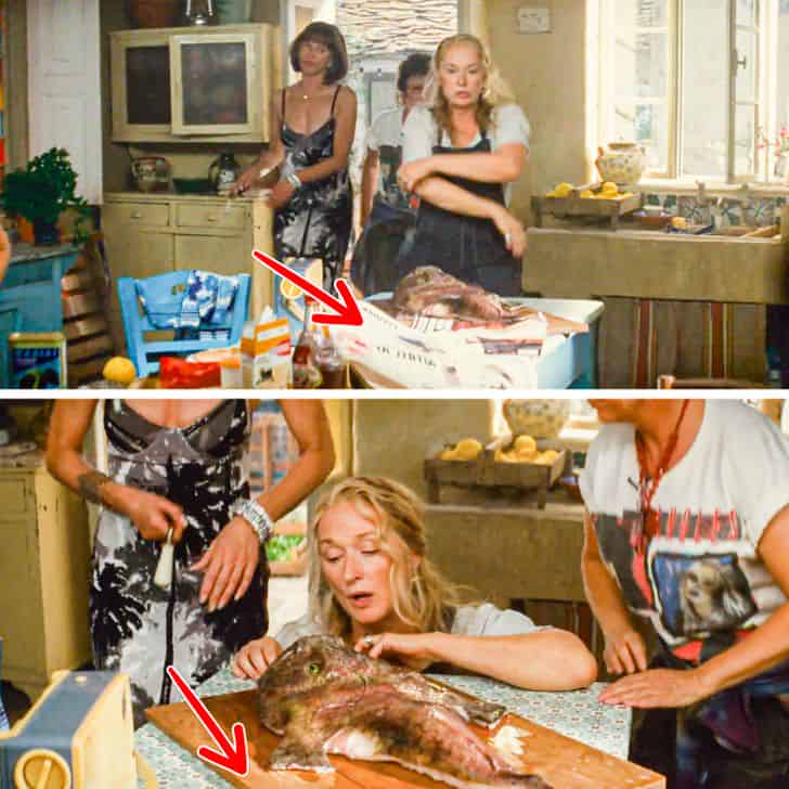 Mamma Mia! reintroduced some of ABBA’s finest songs to the stage, and by combining them with a stellar Hollywood cast, it became a huge hit. That doesn’t mean it’s without flaws. For example, when Meryl Streep’s character enters the kitchen during the song Money, Money, Money, you can see a newspaper on the table that vanishes in the following frame.