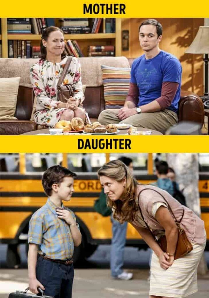 In The Big Bang Theory and its prequel, Young Sheldon, Zoe Perry and Laurie Metcalf played Mary Cooper, Sheldon’s mother, at various ages. It’s not the first time a mother and daughter have collaborated on a project: Zoe played the younger version of her mother’s character on Roseanne.