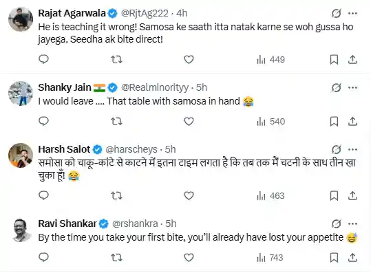 It’s peak personality development vibes—Amol’s academy specializes in spoken English and soft skills, prepping folks for corporate gigs where “Western etiquette” supposedly seals deals. But in the reel, that samosa looks lonely, deprived of its chaotic charm. No hand-crushing the hot edges, no messy joy—just precision cuts that scream “try-hard.” Posted amid his usual tips on interviews and grooming, it was meant to empower. Instead, it’s the ultimate troll bait, with X users zooming in on the “cruelty” to the snack: “By the time you cut it, the samosa has gone cold and the vendor has retired.”
