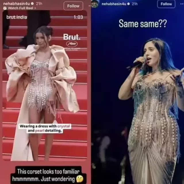 During her second appearance at the Cannes Film Festival, singer Neha Bhasin took to her Instagram Stories to accuse Nancy of fabricating a story that she patched her clothes. Neha posted a picture of herself in a similar outfit from a previous performance. Through her anecdotes, Neha did disclose that Nancy was not breaking any laws when she made a dress for herself. The singer hinted that Nancy was, in a sense, making money off of stolen designs by selling them out. According to reports, she attempted to pass off the clothing as her own at Cannes 2025. On Instagram, she posted narratives and captioned them: