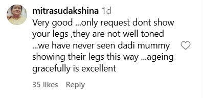 “Very good… only request don’t show your legs, they are not well toned. We have never seen dadi mummy showing their legs this way… ageing gracefully is excellent.”