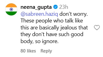 Neena Gupta is well-known for her direct and humorous responses on social media, as everyone is aware. How, however, is she unable to respond to this comment that advises her on what to do and what not to do? She advised her admirers to disregard such remarks, adding that they should not be taken seriously because they were made by jealous people who did not have a body like hers.