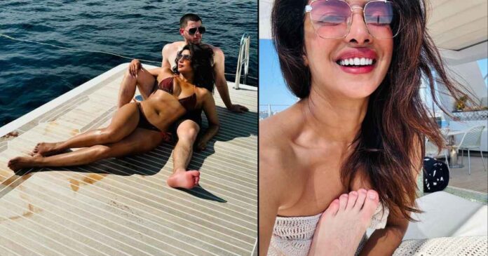 The actress is spending quality time with her daughter Malti Marie Chopra Jonas and hubby Nick Jonas. In an Instagram carousel picture, she gave a glimpse inside her vacation—full of cuddles, cosiness, kisses, wine, dining, and lots of sunbathing.