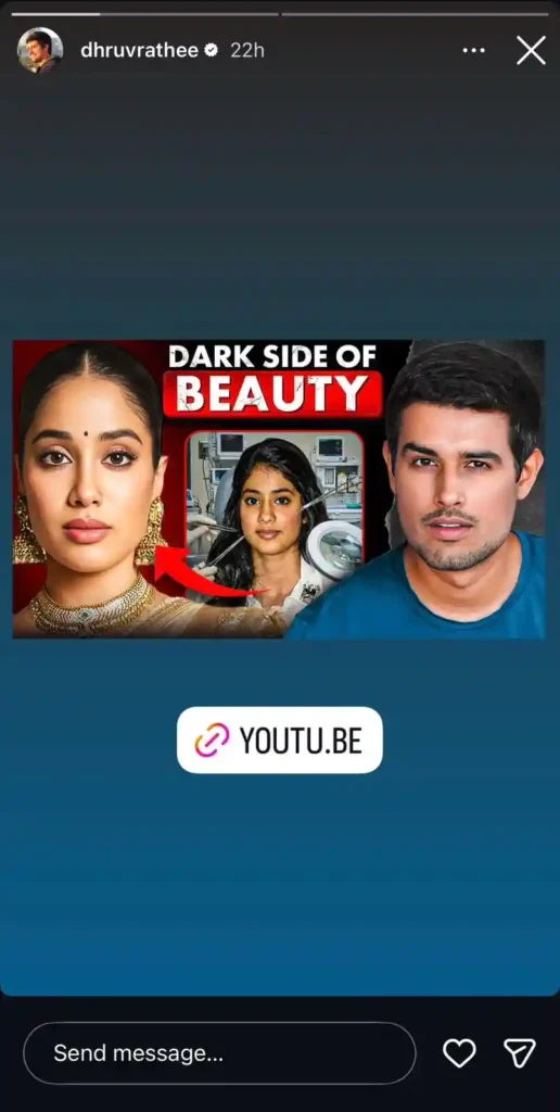 Dhruv Rathee, the Germany-based gadfly whose 20 million subscribers tune in for takedowns on everything from elections to environmentalism, has built a brand on bold blasts – but his Christmas Day 2025 video “The Fake Beauty of Bollywood Celebrities” blew up for all the wrong reasons. Clocking 2 million views in 48 hours, the 20-minute manifesto dives into the “deceptive dazzle” of filters, fillers, and fame, with Rathee railing against the “unreal” standards stars like Janhvi Kapoor peddle. Fair game? For some, Foul play? For the faithful who felt the thumbnail – a split-screen “before” (Janhvi’s fresh-faced teen self) and “after” (her red-carpet glow-up) – was a cheap shot at a woman who’s weathered whispers since her 2018 debut in Dhadak.