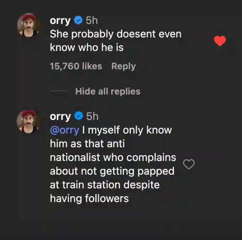 – A savage shade that shaded Rathee’s relevance, implying Janhvi’s stratosphere of stardom soars too high for his hot takes. It’s the kind of casual cruelty that cuts deep, delivered with Orry’s trademark twinkle – a troll that’s too true to be tame.