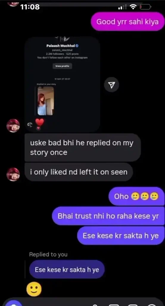 To back her bombshell, she shared Palash’s phone number as “proof,” urging verification. “I deleted old chats to avoid issues in my own relationship,” she explained, but the persistence as a “committed man” left her uncomfortable. The post, titled “New update on this tea: Smriti and Palash,” exploded with upvotes and outrage, linking back to Mary’s claims and questioning if this is a “pattern of unfaithfulness.”