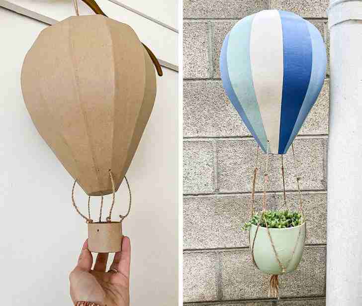 6. “I made a hot air balloon paper-mache into a hanging planter.”